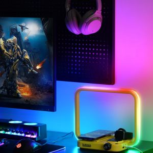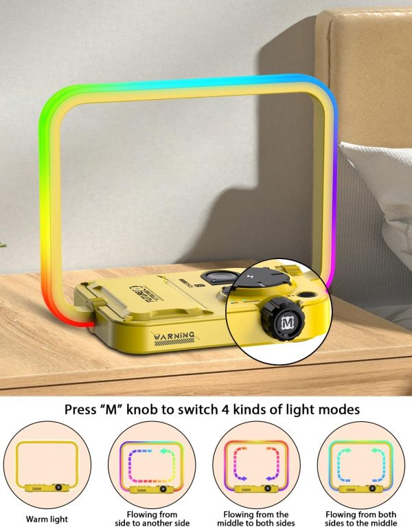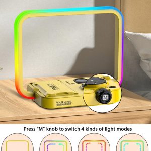 Mild WARM LIGHT: The night stand lamp can be set to warm light or multi-color light which does “remember” your last setting. Turn it off in a warm light state and when you turn it on it is in the same warm position. Turn it off in the RGB light position, and then when you turn it on again, it is in the same state. A simple touch of the yellow square bar to manipulate the lights on/off and turn the dimmer switch to change the brightness in warm light mode.