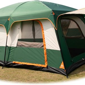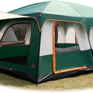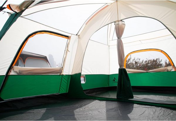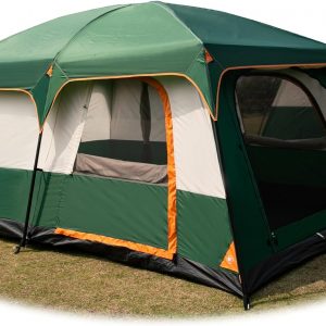 KTT Extra Large Tent 10-12 Person(B),Family Cabin Tents,2 Rooms,3 Doors and 3 Windows with Mesh,Straight Wall,Waterproof,Double Layer,Big Tent for Outdoor,Picnic,Camping,Family Gathering