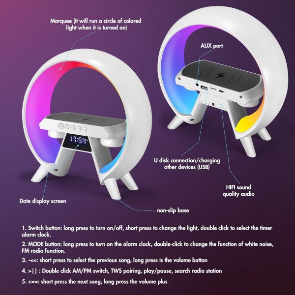 Ambient light with 15W wireless fast charger and bluetooth speaker