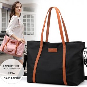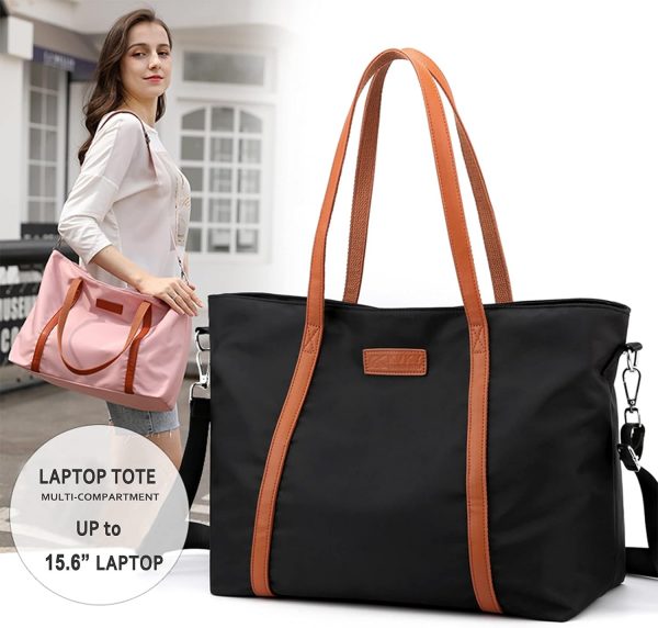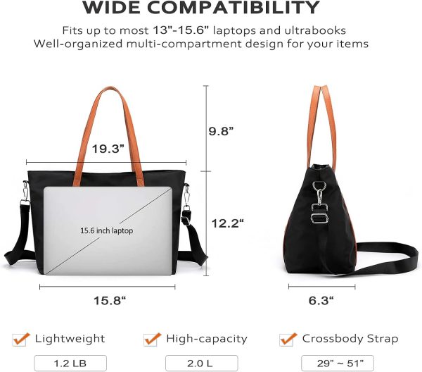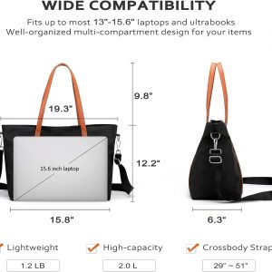 Laptop Bag Waterproof Lightweight Tote Bag for Women Nylon Briefcase Computer Work Shoulder Handbag Fits 15.6 inch Laptop with Trolley Sleeve