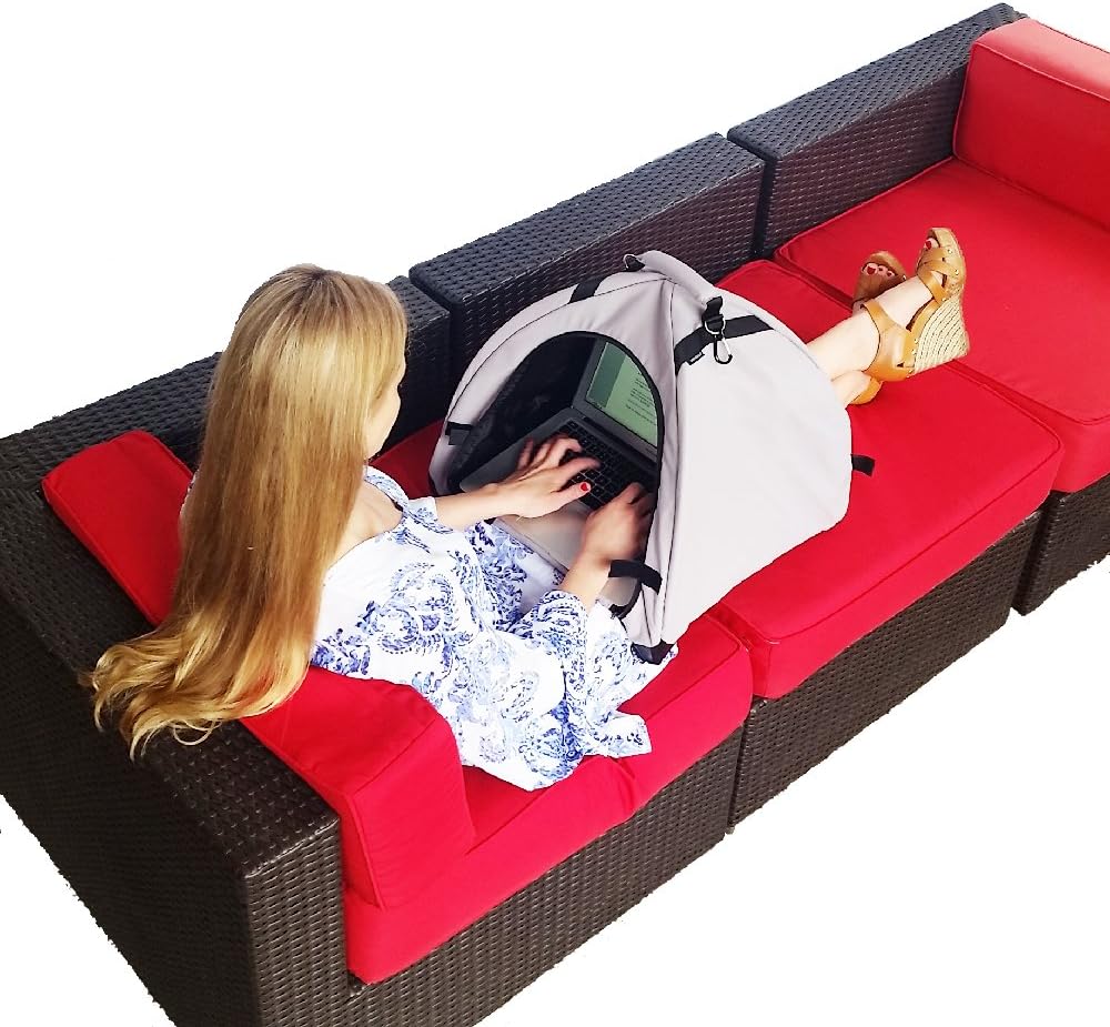 The Laptop Tent is a Super Lightweight “Collapsible” Laptop Computer Carrying Case that pops open to shade and protect your laptop, tablet and cell phone.