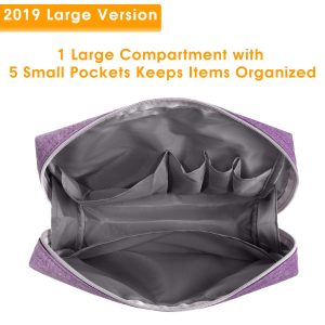 ✅ ROOMY MAIN COMPARTMENT – One main compartment with 5 small pockets neatly organizes your makeup. One large compartment easily holds travel-size toiletries or large skin-care products. Side pockets holds your concealer, lipsticks or other small items.