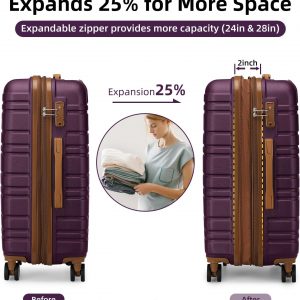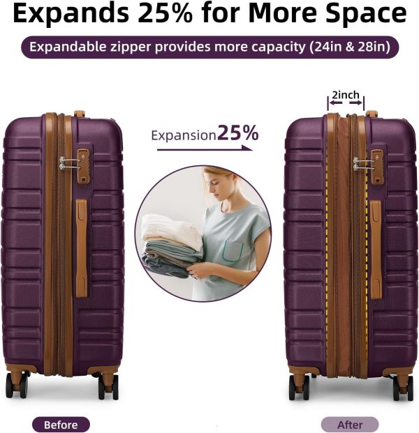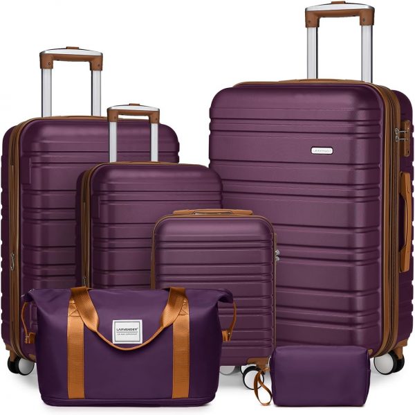 LARVENDER Luggage Sets 6 Piece, Expandable Hardside Carry on Suitcase Set with Spinner Wheels, Lightweight Rolling Luggage for Men and Women with TSA Lock, Purple