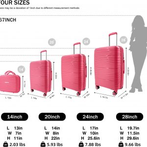 【 Expandable 4 Piece Luggage Set 】The 14 inch suitcase can store some daily necessities such as cosmetics, water glasses, etc. which is easy to access at any time. 20 inch carry on luggage & 24 inch suitcase is perfect for business and personal travel, 24 inch & 28 inch luggage is expandable, which can expand 25% of the additional space.