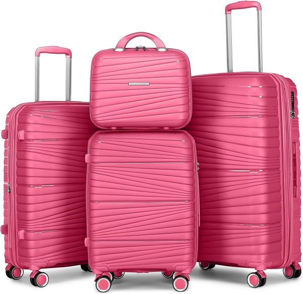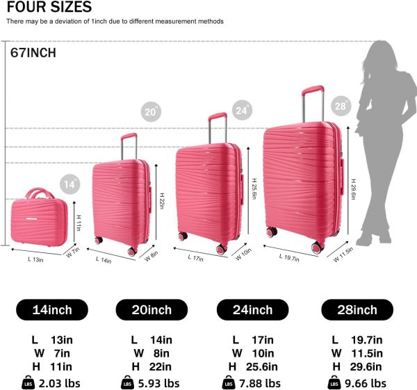 【 Lightweight Luggage Sets 】Made of environmentally friendly imported ultra-light PP material, Compared with ABS and PC plastics, PP materials suitcase have better resilience, it can be restored to its original state after being hit violently. Luggage 4 piece sets are the best choice for travel, family travel and business travel.