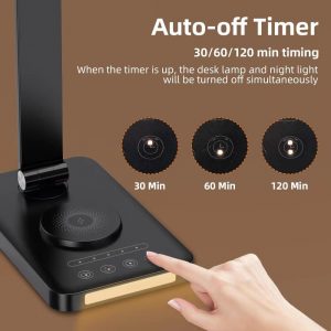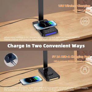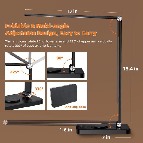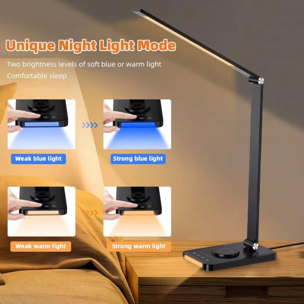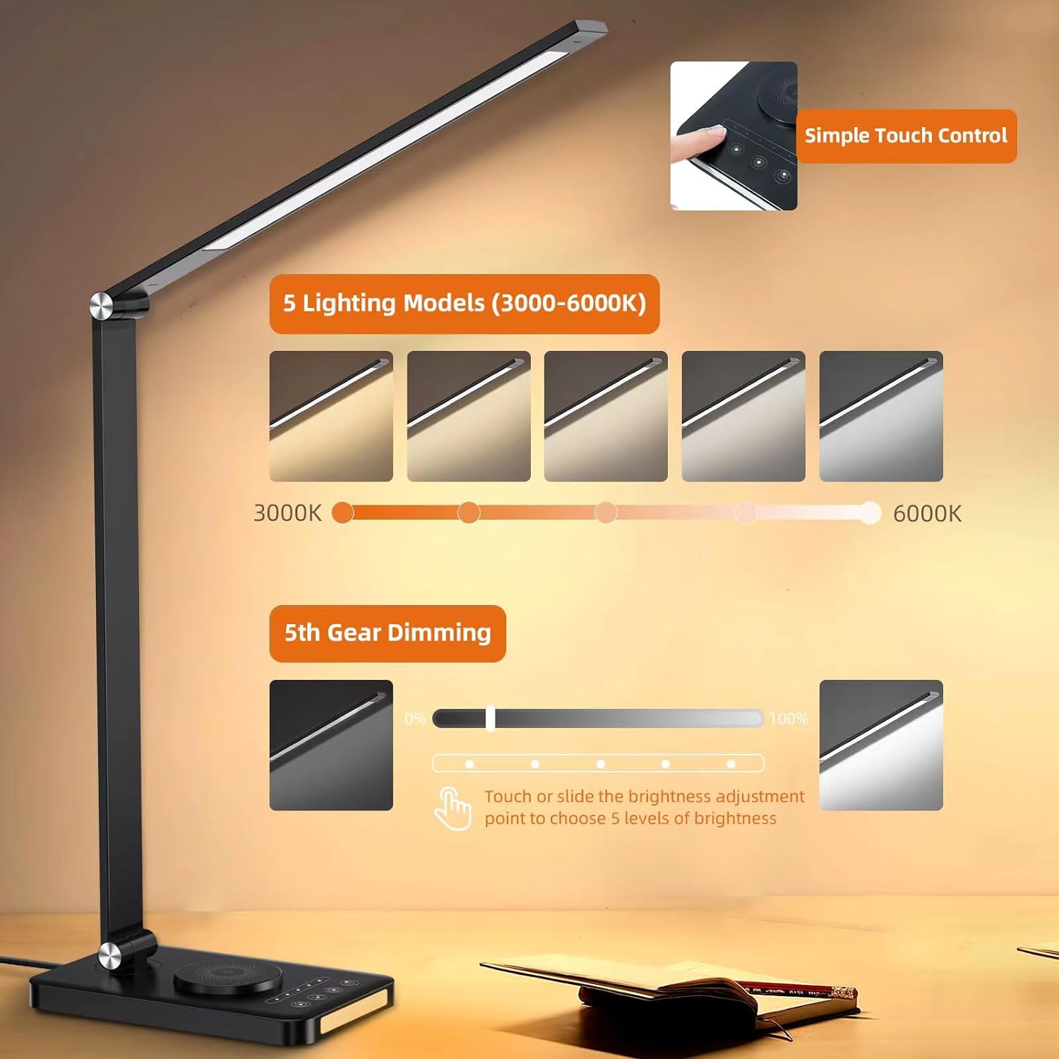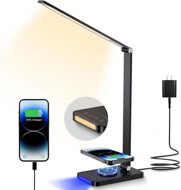 LED Desk Lamp with Wireless Charger, USB Charging Port,Desk Lamps for Home Office,Touch Control,Dimmable Table Lamp,4 Color Night Light,Work, Study, Reading, Office Desk Lamp,Black