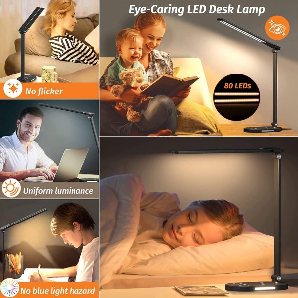 【Gentle on the Eyes & Timer】LED desk lamp features 80 energy-saving lamp beads with a CRI(Ra)>85%, the light is soft, uniform, and flicker-free, effectively reducing eye fatigue caused by long periods of work or study. Our touch control desk light with 5 lighting modes (2800K-6500K) and 5 brightness levels. which provids ideal light levels for working, studying, reading, relaxing, etc, and 1H auto-off timer feature so you don’t have to worry about falling asleep while reading at night.