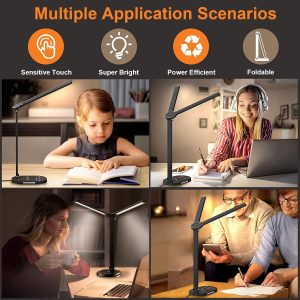 【25 Adjustable Lighting & Memory Function】Our led desk lamp has 5 color modes and 5 brightness levels, with simple and easy free adjustment by touch dimming bar, from white light to warm light(2800K – 6500K), from 10% to 100% brightness, meet your various lighting needs for different occasions. Our LED desk light supports power-off memory function, which can restore your last lighting mode and help you remember the light color and brightness, making it easy for you to keep your lighting habits.