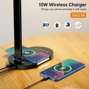 【Wireless Charger & USB Charging Port】The Dimmable Desk lamp has 10W Wireless Charging and USB Charging Functions (With 47.24″ USB Charging Cable and 5V/2A Adapter) Any USB outlet Can Charge this desk lamps. After the lamp is connected to electricity, Easily to charge cellphone Regardless of the lamp is on/off. No trouble to deal With cord chaos anymore! Note: Make sure the phone supports Wireless Charging, Remove Phone Case and Placed on the Charging range While Using Wireless Charging.