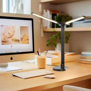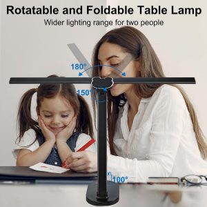 Double-Headed Design: ABS base, Aluminum alloy pole, Flexible design. The adjustable desk lamp has two arms that can work together to focus the light and eliminate shadows. Opening two arms to 180° horizontally or 160° as you need vertically provides excellent light. Up to 1000lm, RA color rendering greater than 85. This makes our desk lamp an ideal choice for sewing tables,reading, study, and crafting!