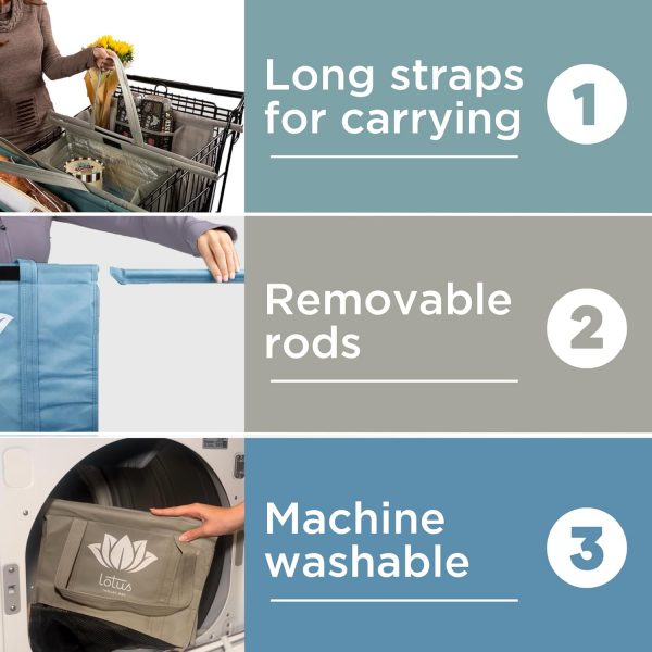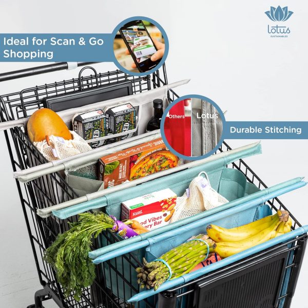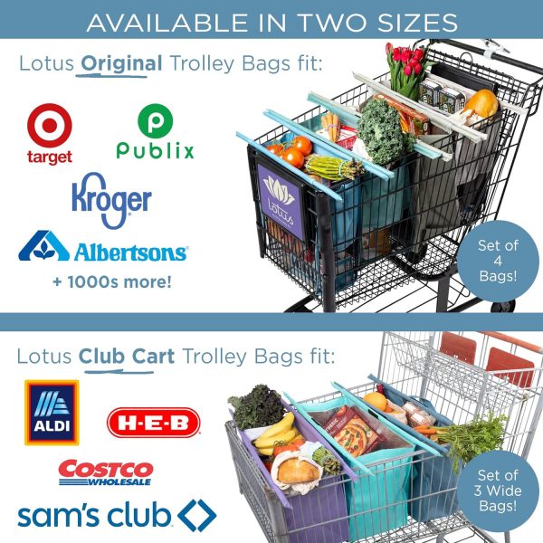 ✅ IDEAL BAG SIZE: We come up with the BEST set of 4 bags that is a PERFECT FIT. Our rods are designed to fit carts including WHOLE FOODS, VONS, RALPHS, WALMART & several other NON CLUB stores. Extended handles, double stitching and wider openings make our bags easy to carry and unload. Built to last for years. If you are looking for COSTCO/SAMS, TARGET or ALDI check out our Club Cart Version for the perfect fit.