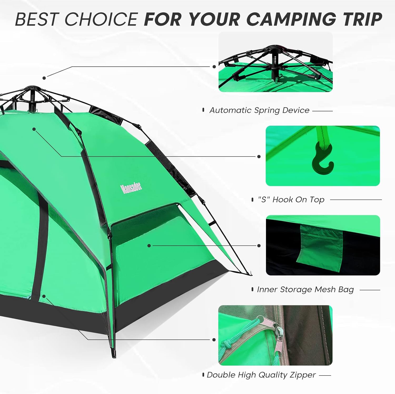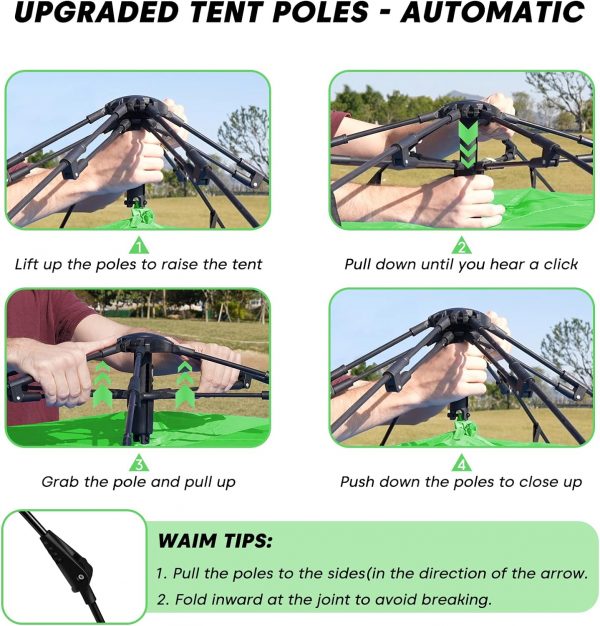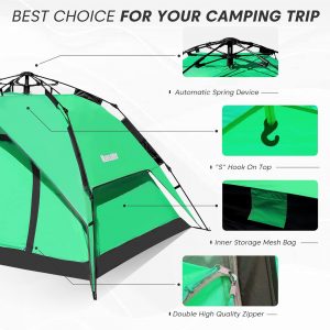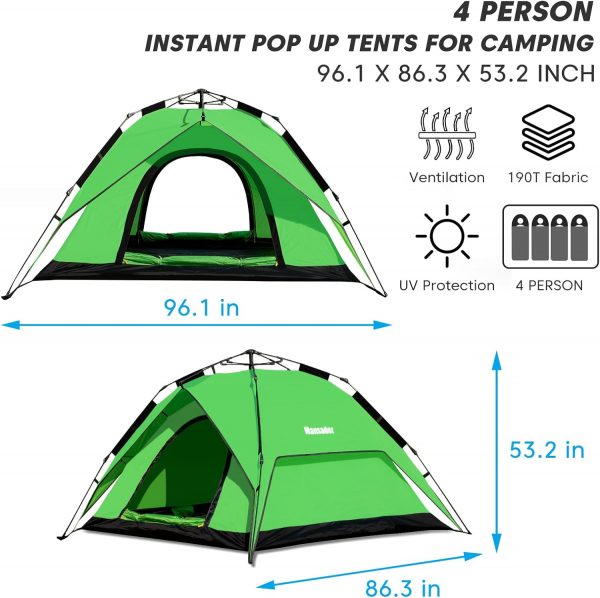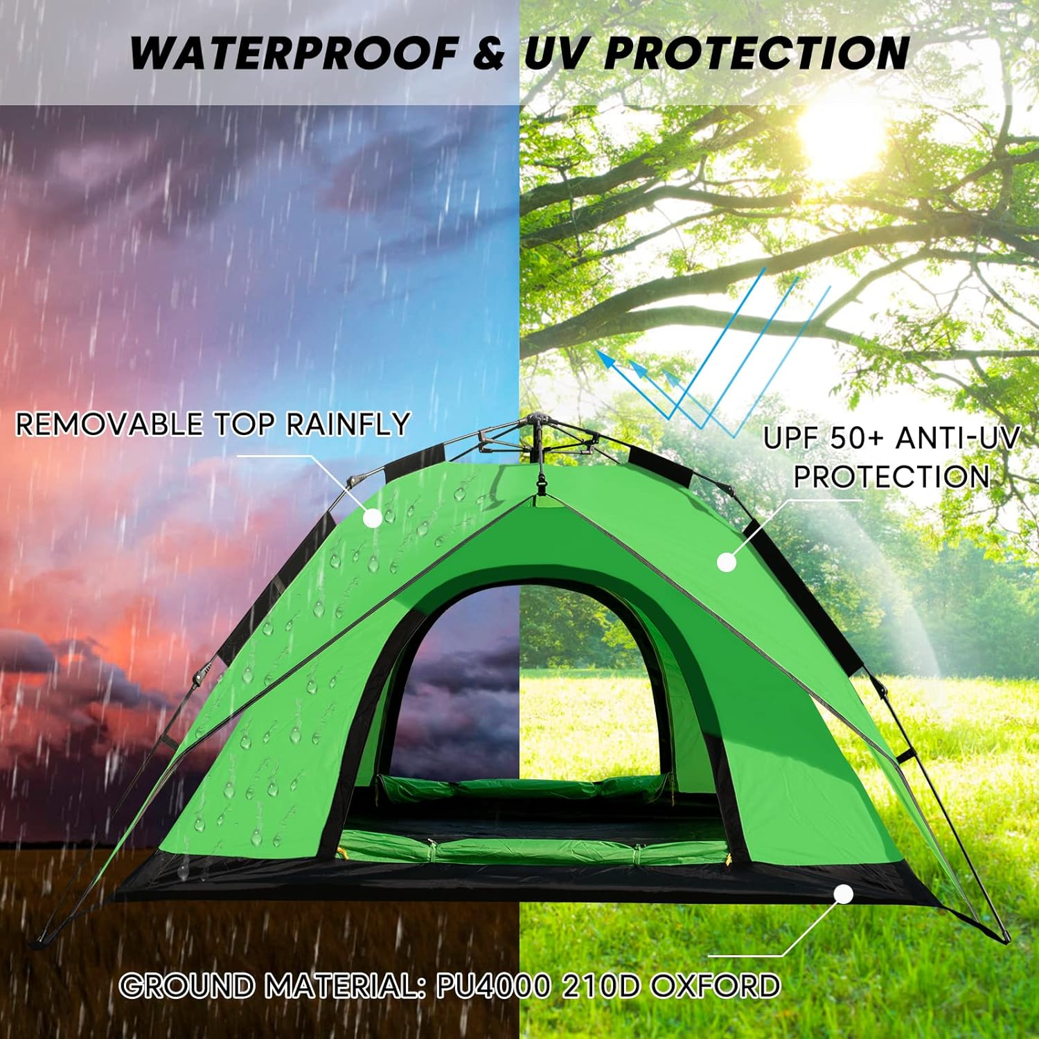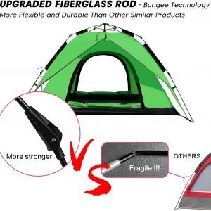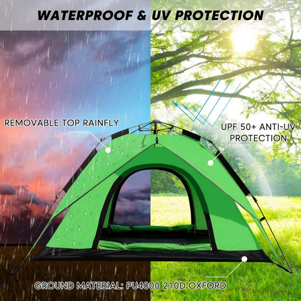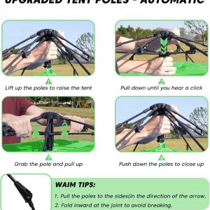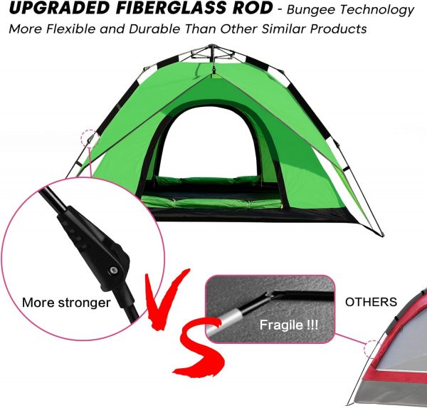 【High-quality Pop up Tent 4 People】190T PU material and 210D Oxford Ground Sheet provide UPF 50+ UV resistance and 2000mm water resistance. Easily keep the inside of the tent dry! The automatic tent pole is superior to the traditional tent pole, has stronger wind resistance and is not easy to break.