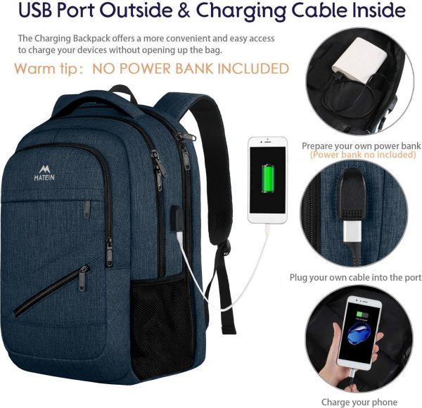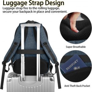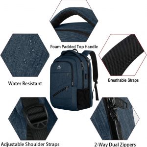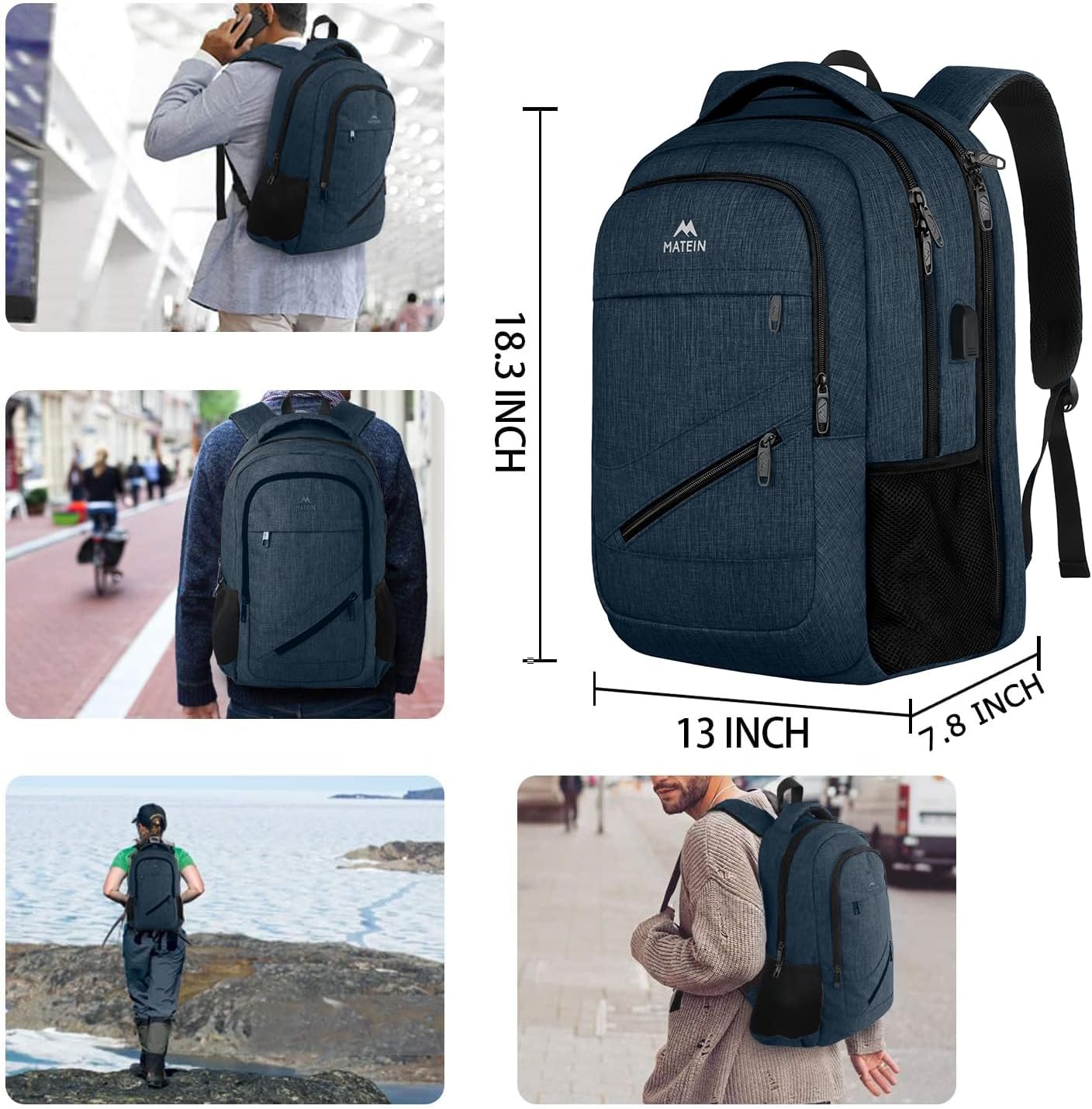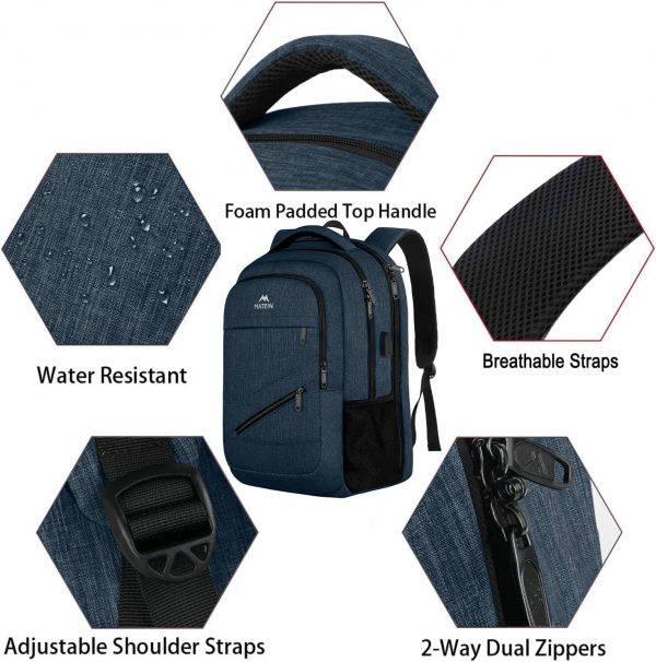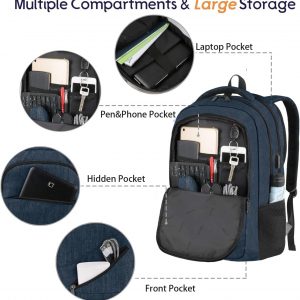 Separated Laptop Pockets: Fits Under17.3 Inch Laptops, Macbook, iPad and notebookMain Compartment: Thin clothes, headset, books, magazine, camera etcFront Compartment: For phones, earphone,wallet, passport, keys, purse and easier to findSide Pockets: fit water bottles, phone accessories, umbrella, other electronic devices and various items