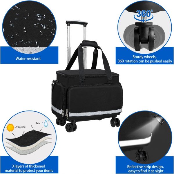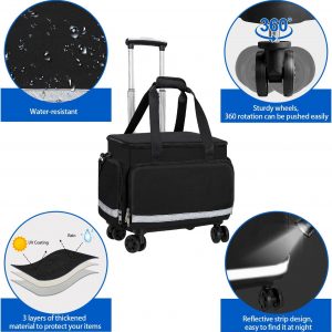 Easy to Transport and Maneuver: Designed with convenience in mind, the medical rolling duffle bag features smooth-rolling wheels and a retractable handle. This allows you to effortlessly navigate through busy hospitals, clinics, or airports without straining your back or shoulders. The bag’s sturdy top handles also provide alternative carrying options for situations where rolling is not practical, giving you flexibility in transportation.