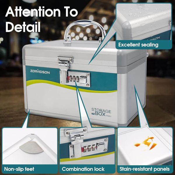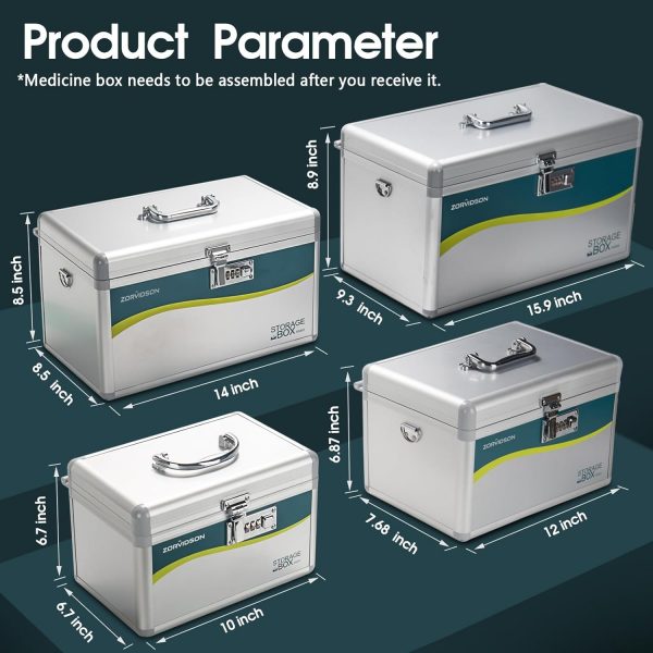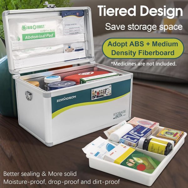 STURDY MATERIAL: Portable medication storage box is made of aluminum frame + MDF + removable plastic tray. Sturdy and durable for daily use. Durable metal construction provides high security.