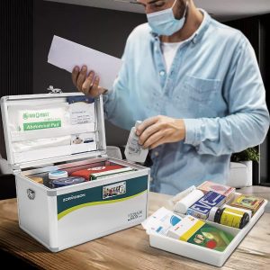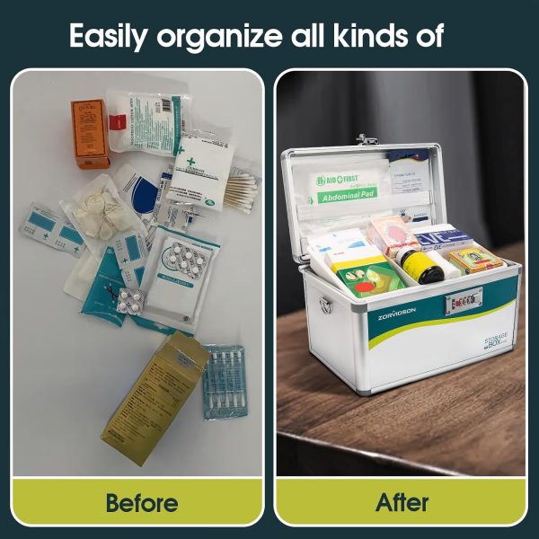 PORTABLE HANDLE: The locking medical box is made of stainless steel handle is lightweight and durable, never rust. Meanwhile, it has portable carrying handle and adjustable shoulder strap design, flexible to move and carry, especially suitable for traveling and outdoor activities.
