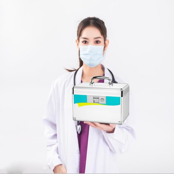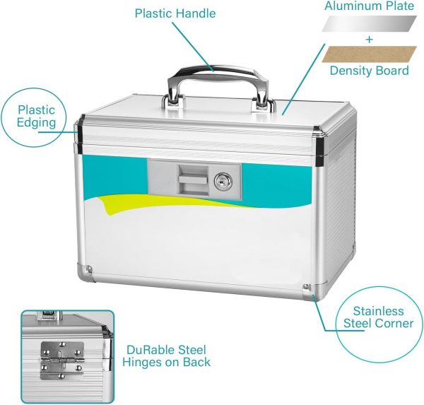 Medication lock box, medicine lock box (silver) 10 × 7.5 × 7.6 Inch,lockble box