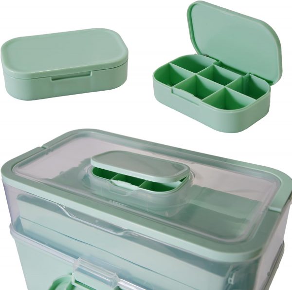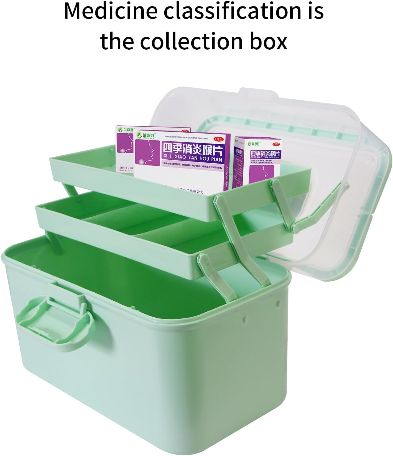 3-Tray Medicine Box : The storage box adopts a 3-layer design,open this medicine storage box, unfolded at 180 degrees, displays as step-shape. Easy to find the medicine you need quickly.Add a pill case,can be easy to remove and carry.