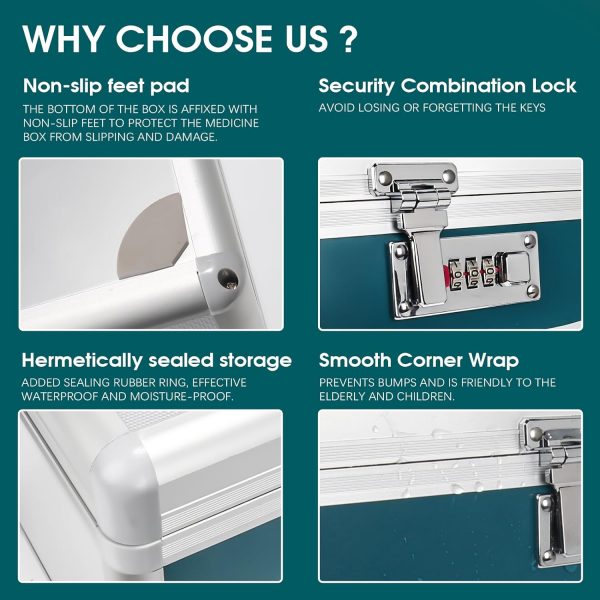 Multifunctional Lock Box: The portable medication box is made of aluminum alloy frame and MDF material. Rugged and suitable for everyday use. The durable metal construction provides a high level of safety while never rusting.
