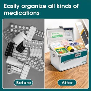 PORTABLE & LIGHTWEIGHT: The lockable medicine box is lightweight and easy to carry with a rugged stainless steel handle. At the same time, we are also equipped with adjustable shoulder straps (SMALL size box does not include strap), especially suitable for travel and various outdoor activities.