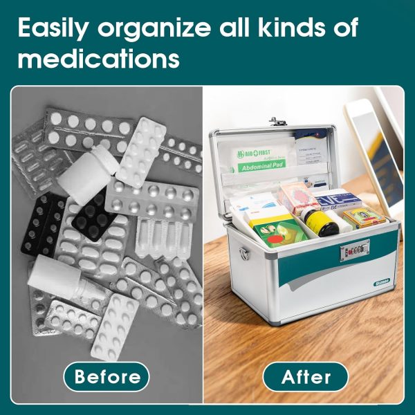 Plenty of storage space: Each of our medicine lockbox contains a removable plastic tray divided into three compartments, which is large and user-friendly, suitable for storing general medicines and any of your personal belongings.