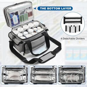 【ADJUSTABLE DIVIDERS】 The pill bottle organizer bag comes with 4 removable dividers that help you divide your medications into the ones you take every day and the ones you only take as needed or otherwise.