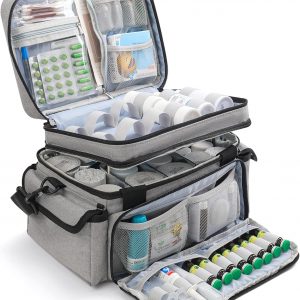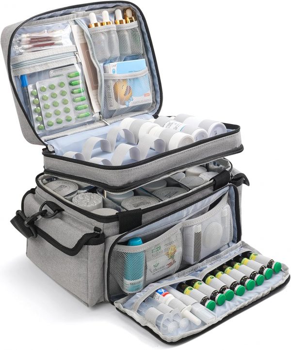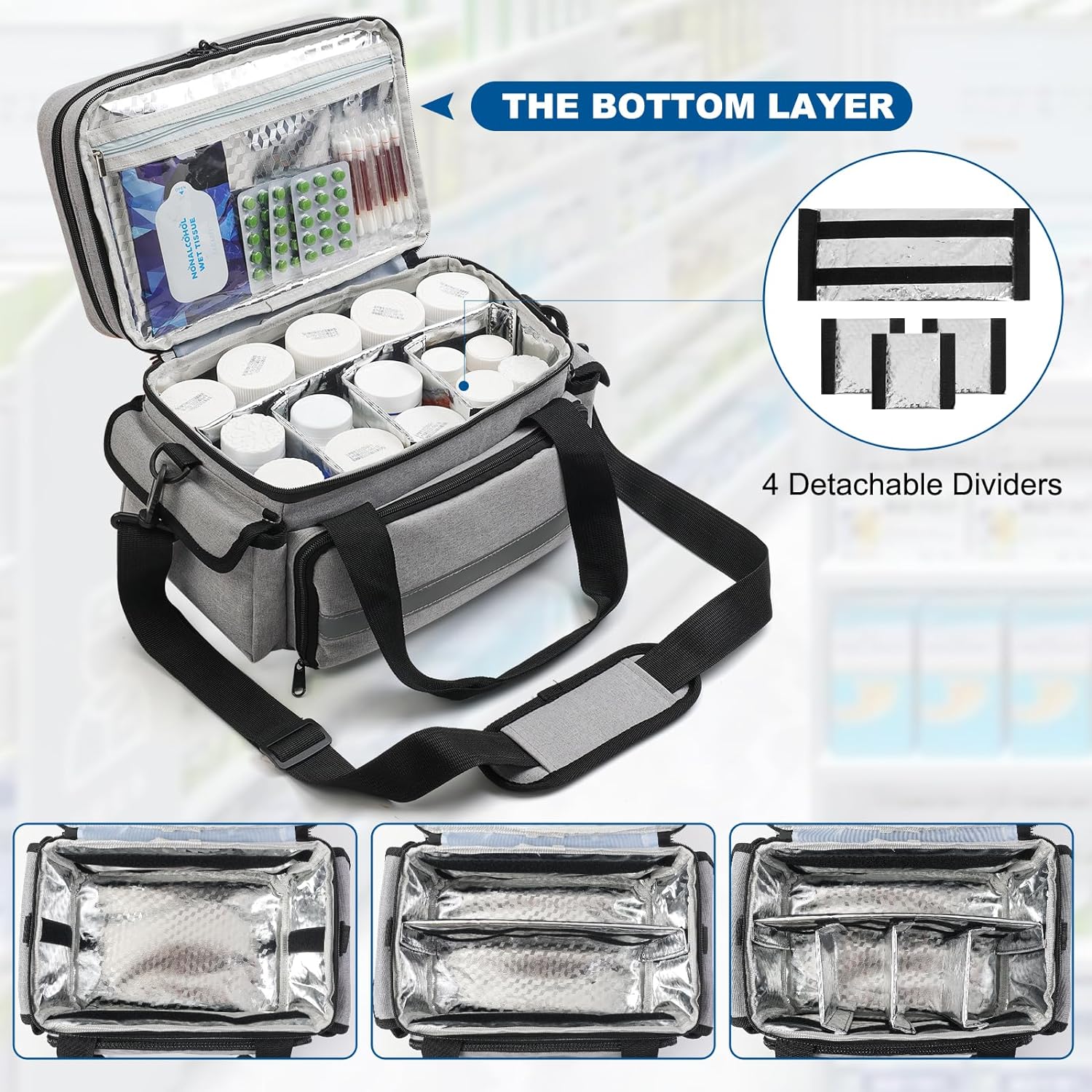 【DOUBLE LAYERS DESIGN】 The medicine bottle storage bag was featured double-layer design that can organize all your family medications, voiding placing the medicines scattered in different places.