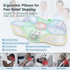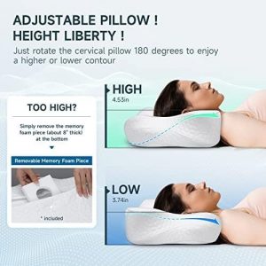 Memory Foam Cervical Pillow – Side Sleeper Pillow Neck Back Shoulder Pain Relief Sleeping Support Your Head – Cooling Ergonomic Orthopedic Contour Bed Pillow for Side Back Stomach Sleeper