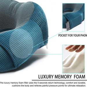 【Lightweight and Portable】Umerci neck support travel pillow was designed for portability and comfort. It was equipped with a pocket on the left, which can hold your cellphone. Comes with a storage bag, the neck pillow can be compressed down to ½ its size and attached to your carry-on luggage without taking up extra space