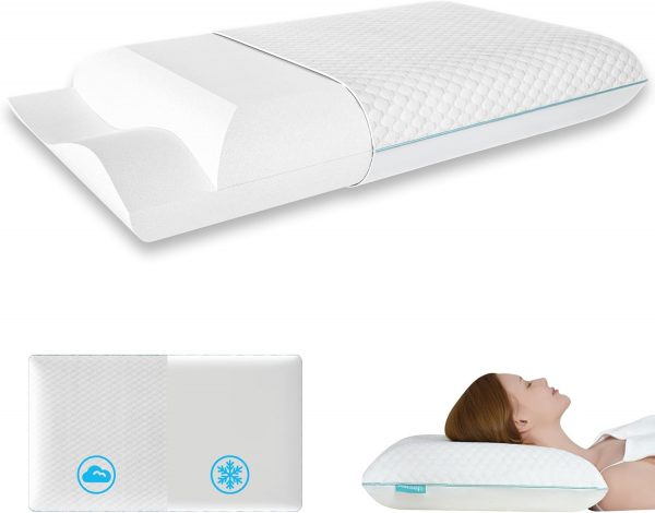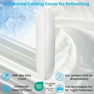 【Dual-sided & Cooling Pillowcase】- The deep sleep pillow has 2 pillowcase sides with different textures for comfortable and cooling sleep. One side uses upgraded cooling fabric, reducing the temperature by at least 3℃ while sleeping and offering an ice-silky smooth feel like milk. The other side has a dot-pattern knit fabric with excellent moisture absorption and breathability, preventing waking up from overheating. Choose our neck pillow for sleeping refreshingly.