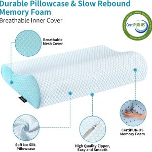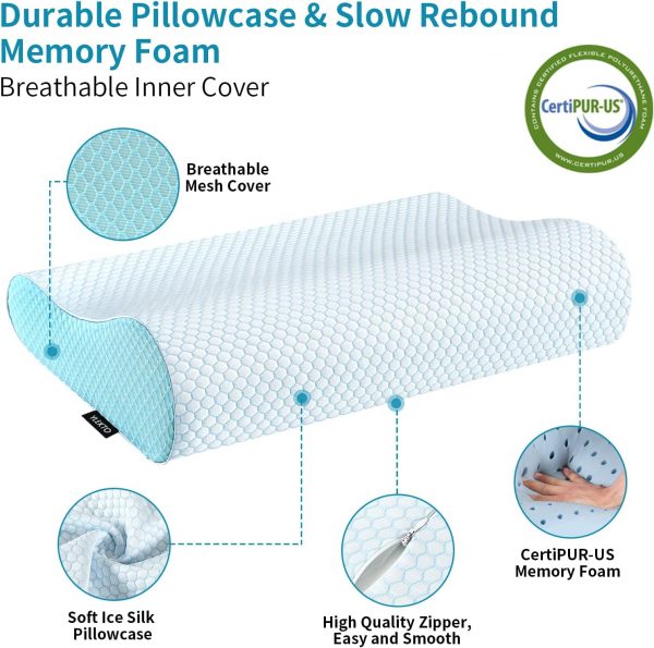 【Removable Pillowcase & Breathable Pillow】 The pillow for sleeping comes with removable pillowcase, which is made of soft comfortable fabric and mesh sides, removable and machine-washed, making you stay cooling feel all night. Besides, the orthopedic pillow features excellent moisture absorption performance and breathability, remaining consistent firmness and comfortable feel all the year.