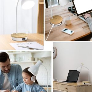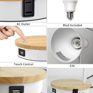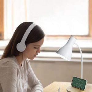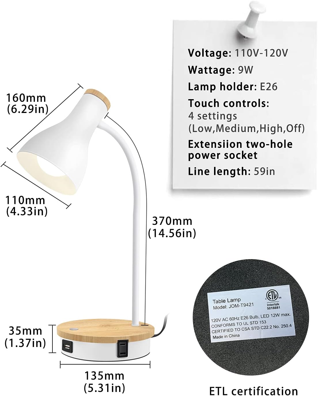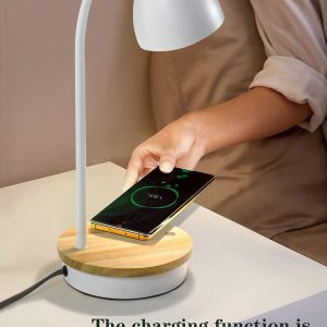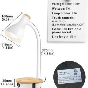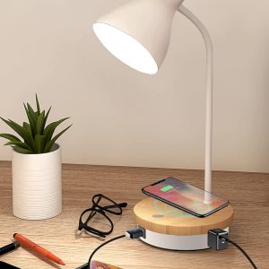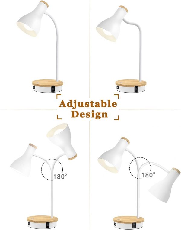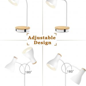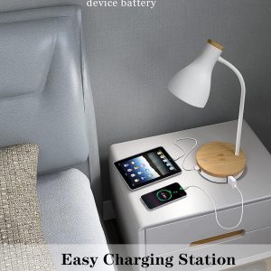 Metal Desk Lamp Wireless Charging Table Lamp Touch Reading Lights Arc Desk Lamps for Bedroom, 3 Way Dimmable Bedside Lamp with USB Charging Ports Lamp for Study Room and Office -(White-01)