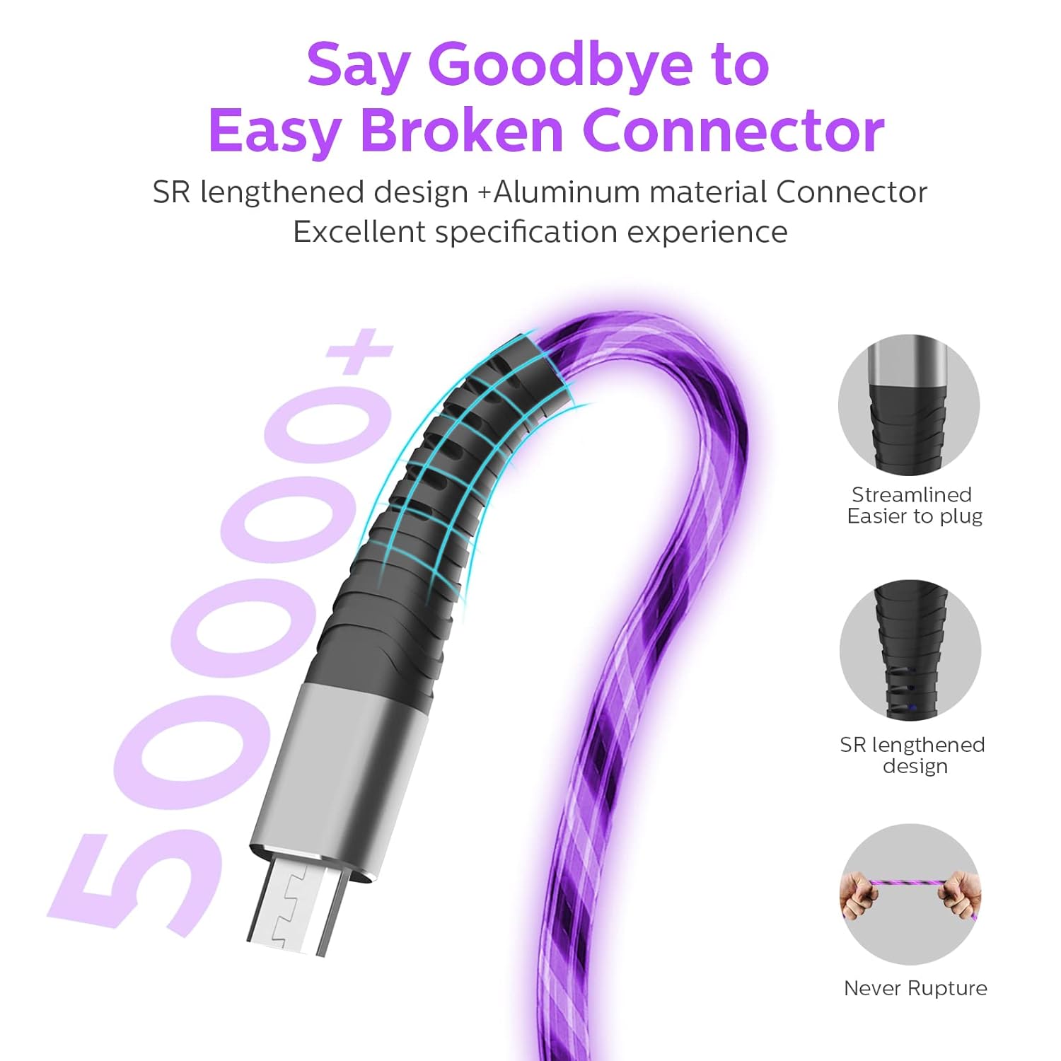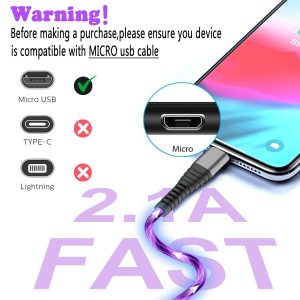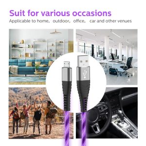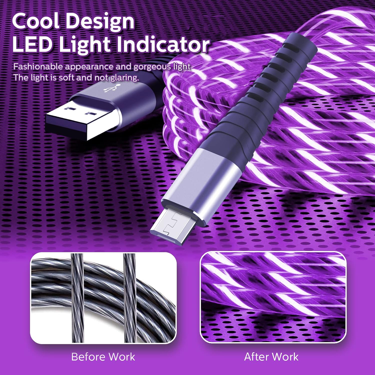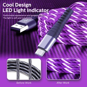 【light up charger for android】LED light, this USB charging cable glows like water when charging. Visible LED light up charging and date Sync cable, which indicates charging status with LED light. When charging in the car or at home at night, the lights create a good lightning atmosphere.