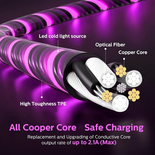 3 Feet LED Light Up phone charger cord: When plugged in, the charging cable will emit a led light. When your device is fully charged, the led light will stop. The led cold light source will not make you feel dazzling, but it can facilitate you to find your device in the dark.