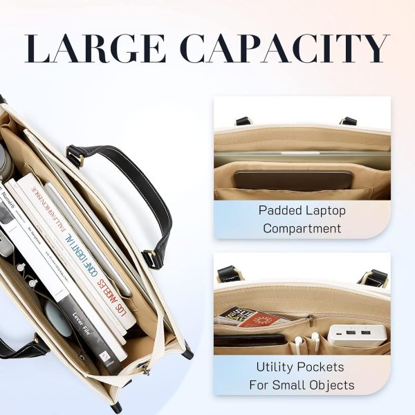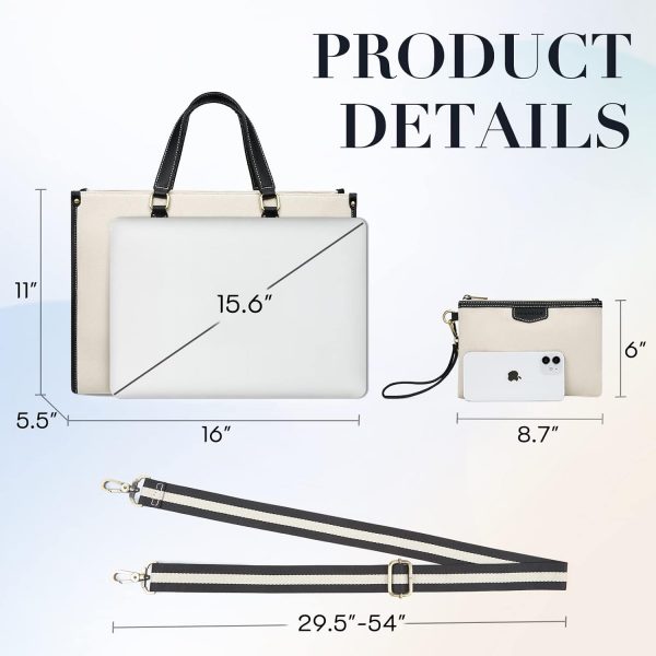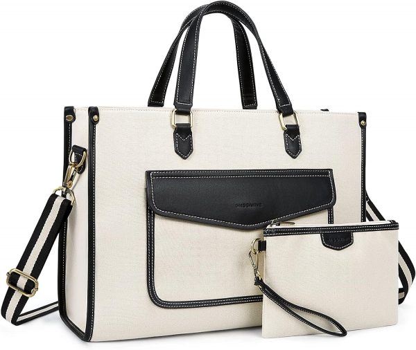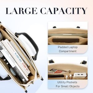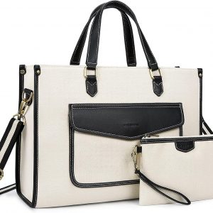 Structured Laptop Bag – 16.1”L x 12.2”H x 5.5”W, secured with zipper closure, the tote bag features a separate padded laptop compartment for your laptop up to 15.6”, a tablet slot for 10.9” iPad, plus 5 inner pockets for your small items.