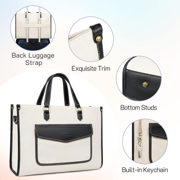 Premium Material- Crafted from cream-color canvas, lightweight and wear-resistant, trimmed with PU leather for a touch of luxury. Gold-finish bottom studs and SBS zipper for long-lasting use.
