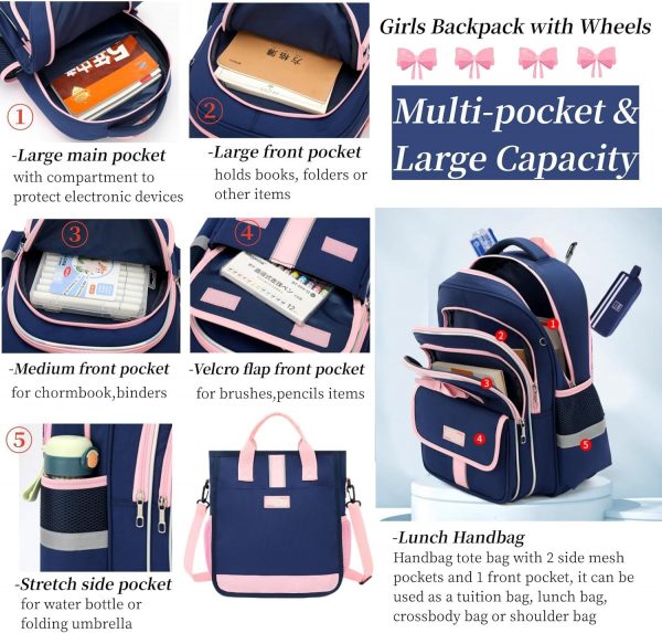 Girls boys backpack| rolling backpack for girls boys| backpack with lunch bag&pencil bag