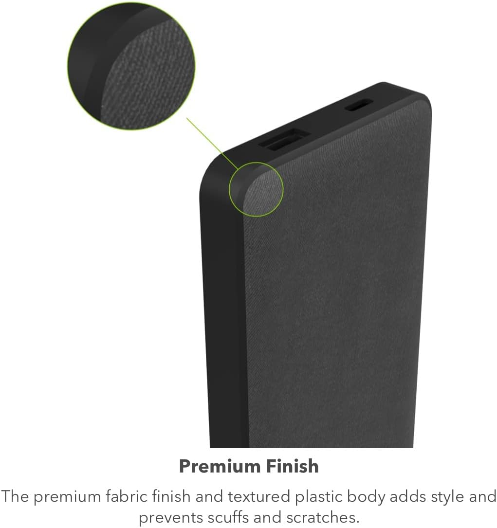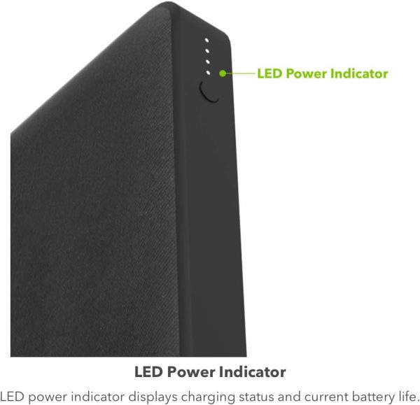 Fabric finish prevents scuffs and scratches. The power bank is your perfect travel companion. It fits easily in your bag so you can carry it to work or on adventures, eliminating the need for individual chargers.