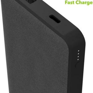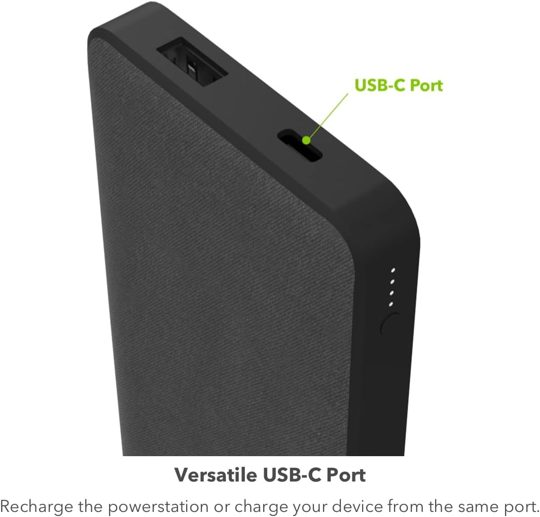 Charge multiple devices simultaneously whether you are at home, work or even out camping, with the mophie Powerstation with PD Power Bank. Featuring a 10,000 mAh high-capacity, large internal battery, it juices up your smartphones, tablets, and other USB-enabled devices. Charges 2 devices simultaneously via (1) fast charging 18W USB-C Power Delivery Port that ensures up to 50 percent charge in just 30 minutes, and (1) USB-A Port. Its premium fabric finish prevents the outer surface from scuffs and scratches and the textured design around the perimeter of power station complements the fabric finish. This portable power bank includes a USB-A to USB-C power cord to charge itself, and other devices effectively. No on/off button or switch is required, as it automatically starts charging once your device is plugged in, making it super user-friendly. There is a built-in 4-light LED indicator that notifies you the battery levels of the power bank as well as your device.