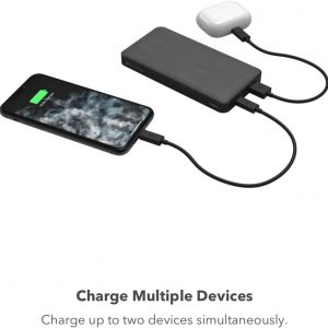Along with the USB-C PD port, the portable power bank also features (1) USB-A port for charging another smartphone, tablet, and any other USB-enabled device. The pack includes one charging cable (USB-A to USB-C).