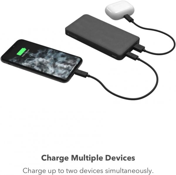 10,000 mAh high-capacity internal battery. The mophie Powerstation power bank allows superfast charging that can fully charge your phone up to 2.1 times. Charge 2 devices at the same time