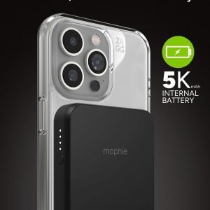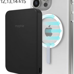 Discover the freedom of wireless charging on the move with the mophie Snap+ Juice Pack Mini. This compact power bank comes equipped with a 5,000mAh internal battery, capable of delivering up to a 100% extra charge, so your phone can keep up with you from dawn till dusk. The snap+ Juice Pack Mini’s magnetic attachment aligns perfectly with MagSafe-enabled iPhones, initiating charging instantly on contact. No more fumbling with cables; the intuitive design allows for charging in both portrait and landscape modes, ensuring you can use your phone how you like, even on charge. The inclusion of a USB-C port adds a layer of versatility, allowing you to recharge your Juice Pack Mini or power another device simultaneously. As part of the mophie snap+ ecosystem, the Juice Pack Mini works in harmony with a suite of magnetic hold and charging accessories. Whether you’re at home, work, or on the go, mophie’s innovative solutions keep your devices charged, synced, and ready to perform. Upgrade your charging experience with the mophie Snap+ Juice Pack Mini – power when you need it, convenience you’ll love.