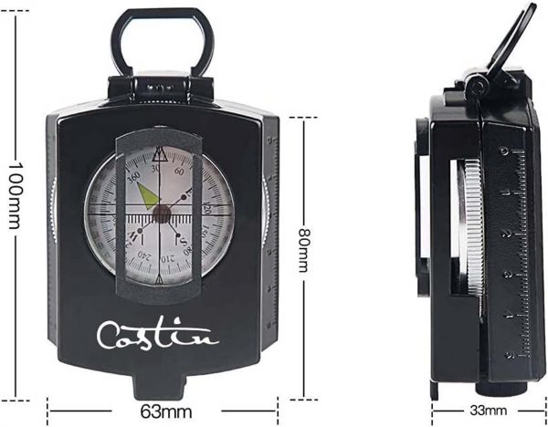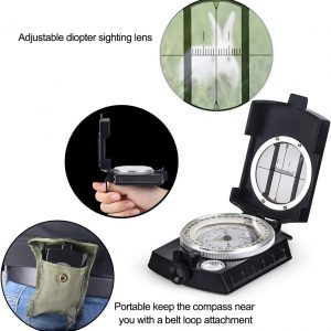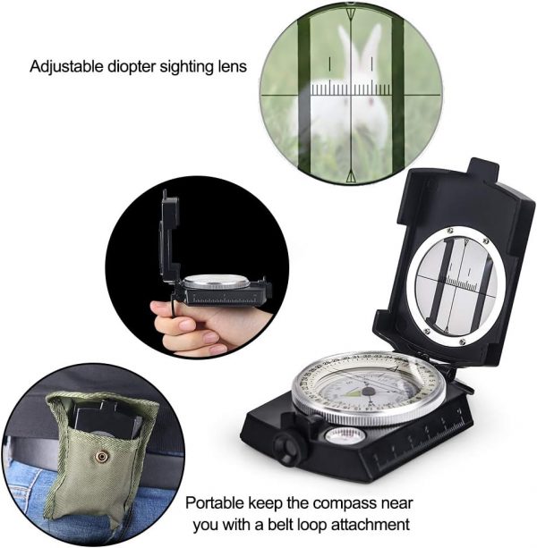【Multifunction and Portable】Traditional military style compass engineered in a compact metal case for maximum portability; Rugged metal body with Foldable metal lid, Floating compass dial with 360° scale, Adjustable prism lens, Sighting Telescope. Pouch and lanyard make it easy to carry around. Absolutely great for outdoor enthusiasts.