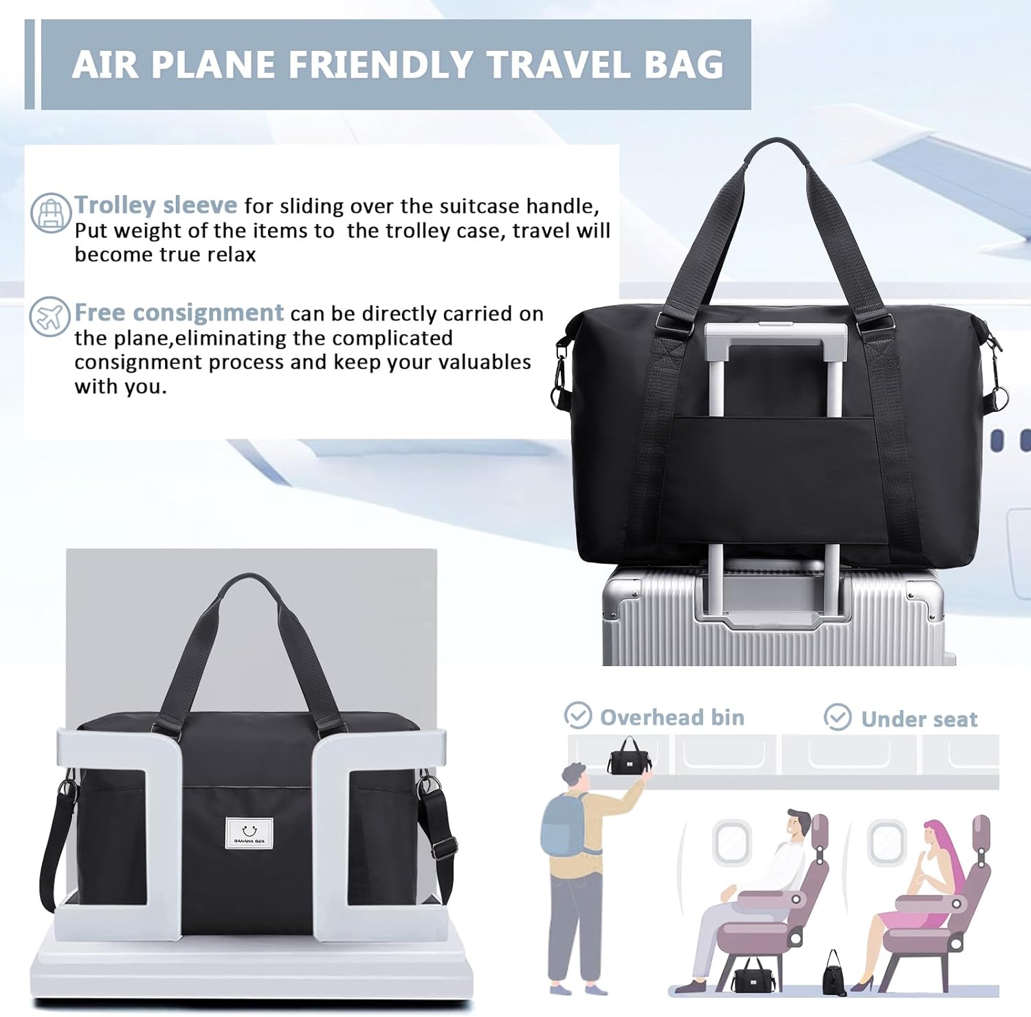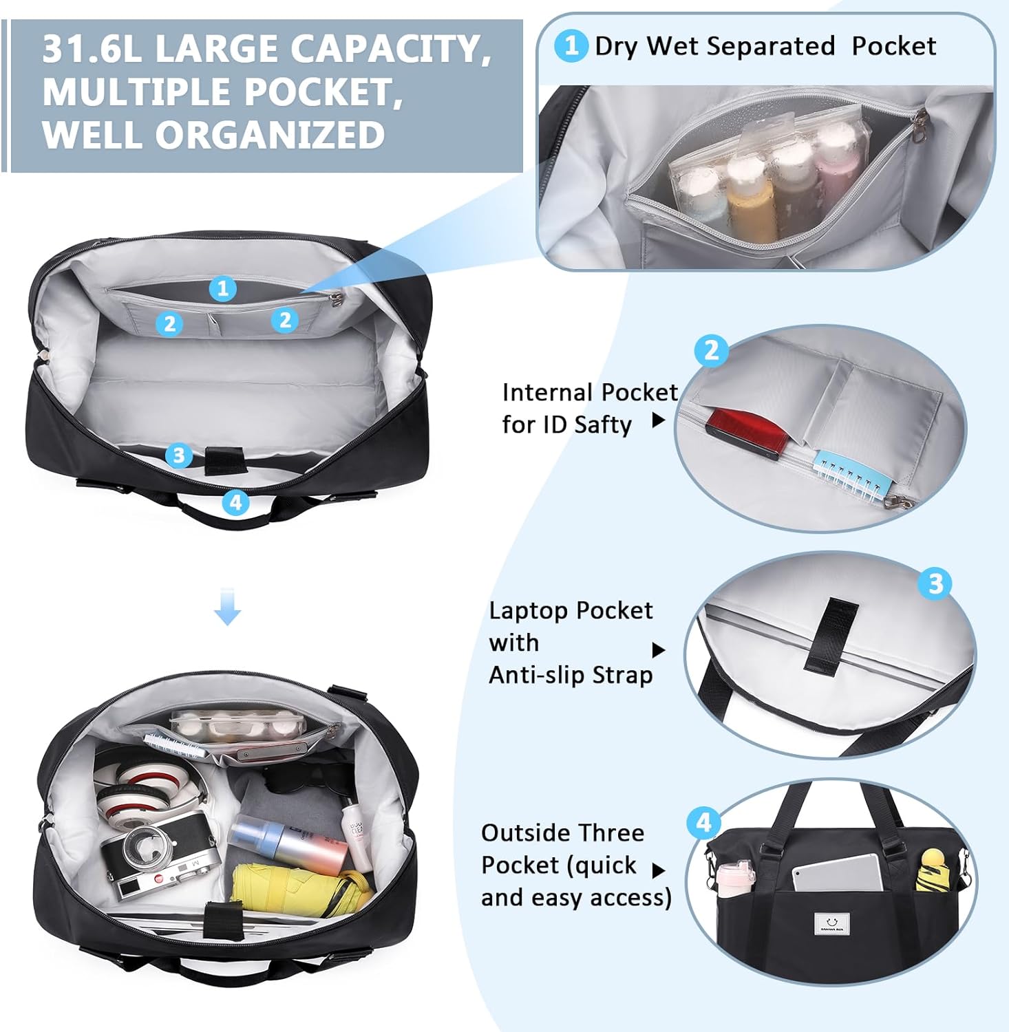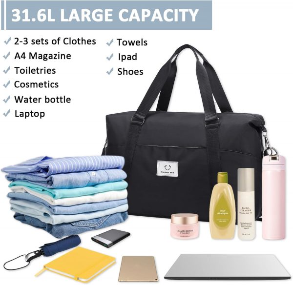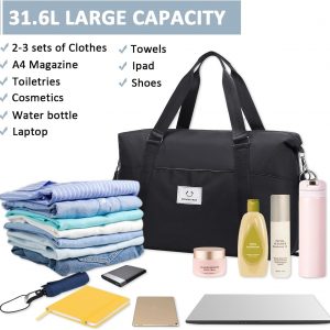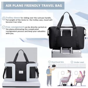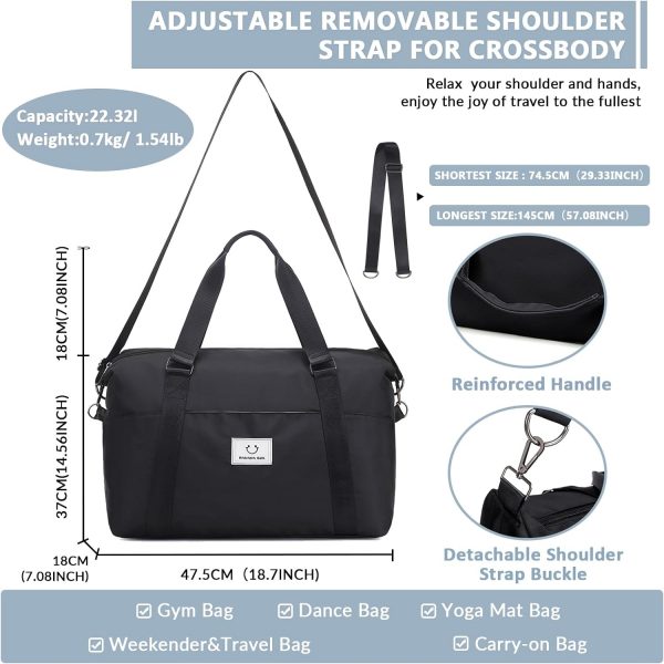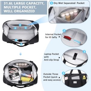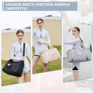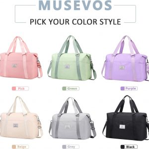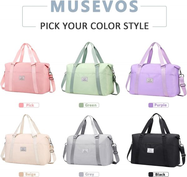 MUSEVOS Gym bag for Women, Travel Duffel Bags with Trolley Sleeve, Weekender Overnight Bag, Carry on Tote Bag Workout Dance Bag with Dry Wet Separated Pocket