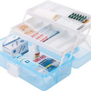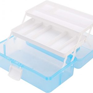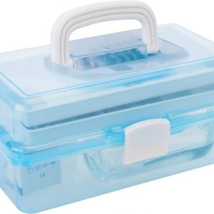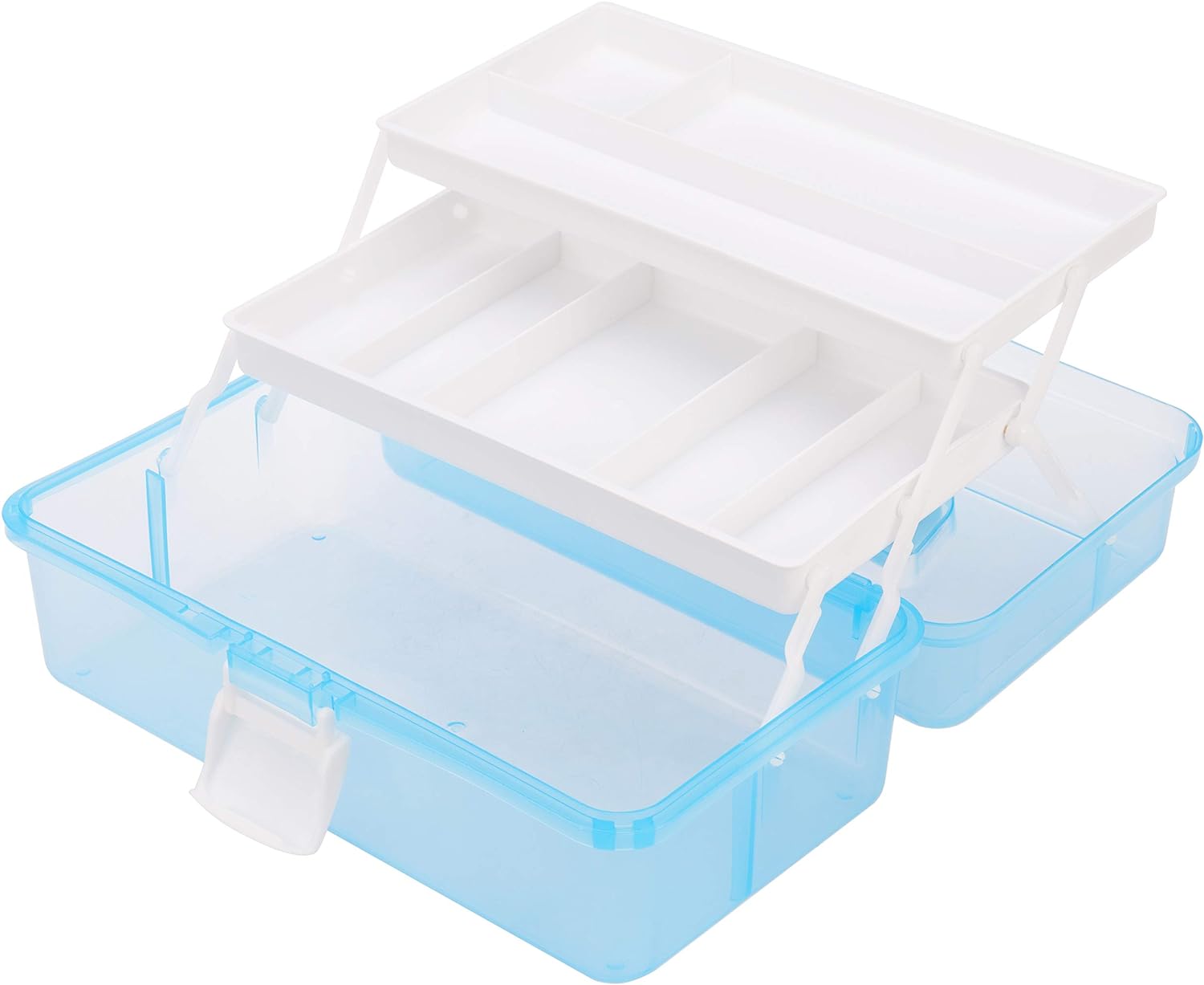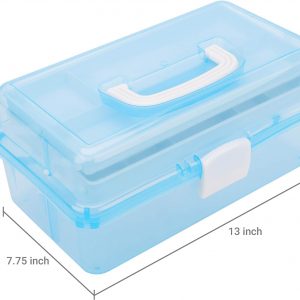 MyGift 13 Inch Transparent Blue Plastic Empty Multipurpose Storage Box with Handle, Latching Lid and 2 Expandable Trays for Tools, First Aid, Sewing Kit, Arts Crafts Supplies