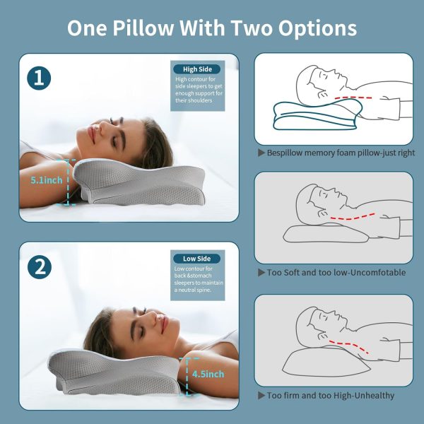 Neck Pillow Cervical Memory Foam Pillows for Pain Relief Sleeping, Contour Pillow for Shoulder Pain, Ergonomic Orthopedic Bed Pillow for Side, Back & Stomach Sleepers with Breathable Pillowcase