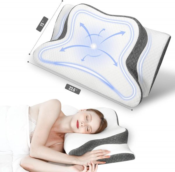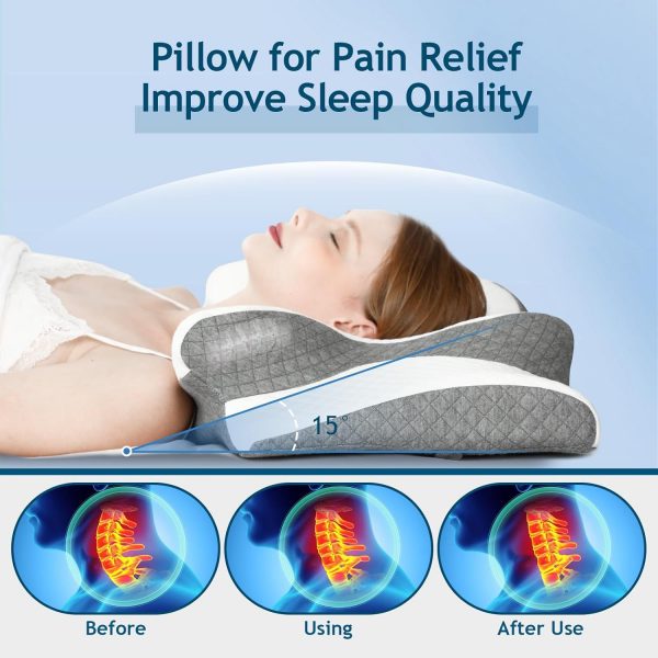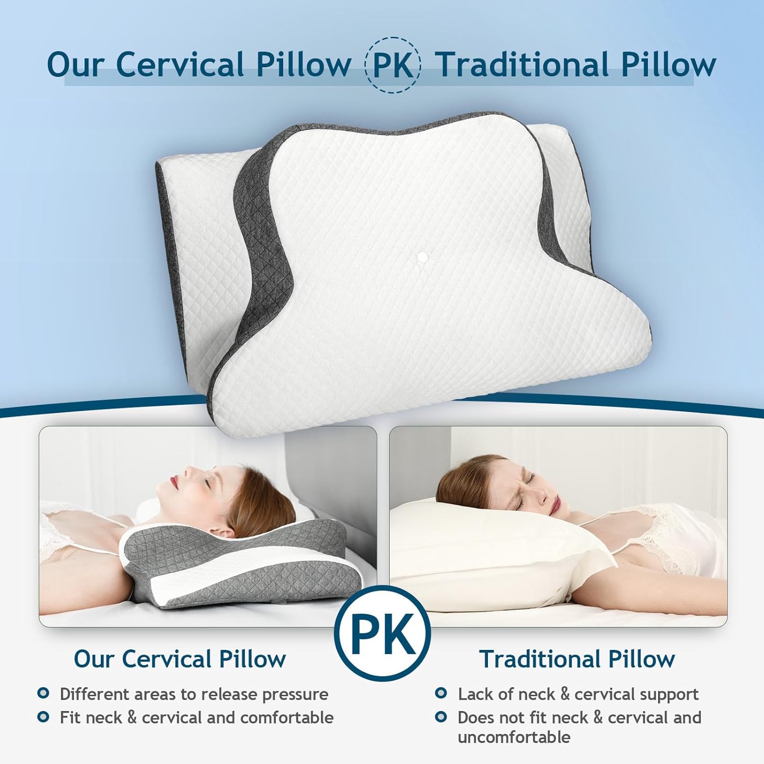 Neck Pillow, Cervical Pillow for Neck Pain Relief, Side Sleeper Pillows for Adults, Cervical Neck Pillow for Side, Back and Stomach Sleepers, Skin-Friendly Design, Dark Grey