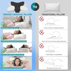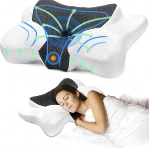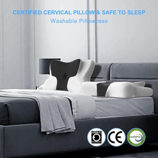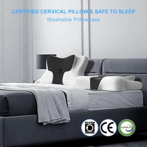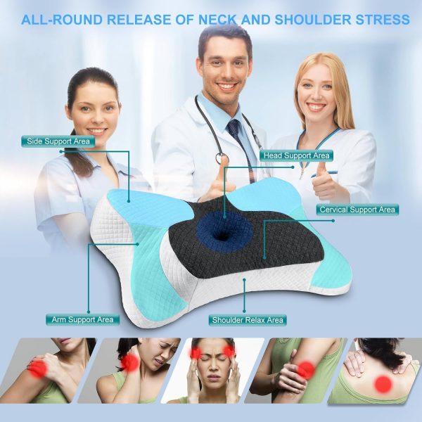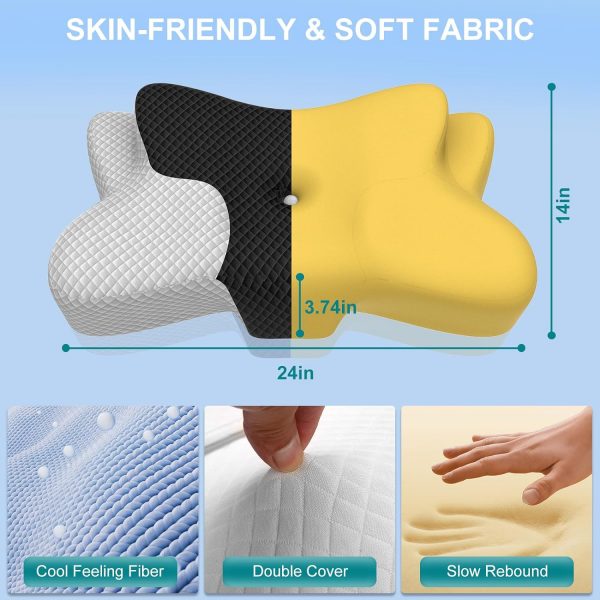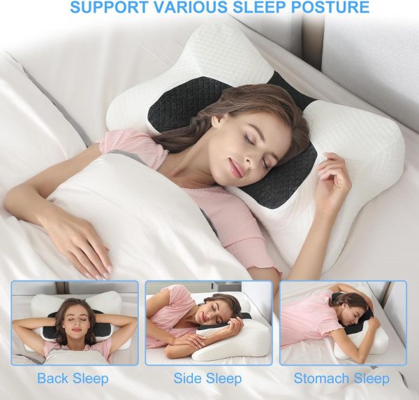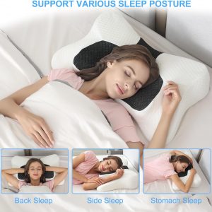 🌑Healthy Sleep Starts with Effective Ergonomic Cervical Pillow – Butterfly neck memory pillow, using the neck raised design and head design to form a height difference to fit the physiological curve of the cervical spine, hollow and seamless fit to support the back of the head, so that the whole body spine in its natural position, minimize the pressure on the cervical vertebrae, and long-term use can reduce neck and shoulder pain and stiffness.