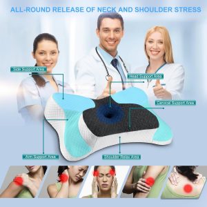 🌓All-round Release of Neck and Shoulder Stress – This innovative butterfly design pillow features 5 uniquely contoured zones for total shoulder, head and cervical spine release and relaxation. The 5 zones are: Head Support Zone, Cervical Support Zone, Shoulder Relaxation Zone, Arm Support Zone and Side Support Zone. Even sleeping on your stomach allows your arms to relax, unlike traditional pillows that have no place to put your arms when you sleep on your stomach.