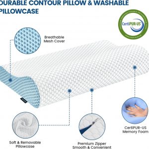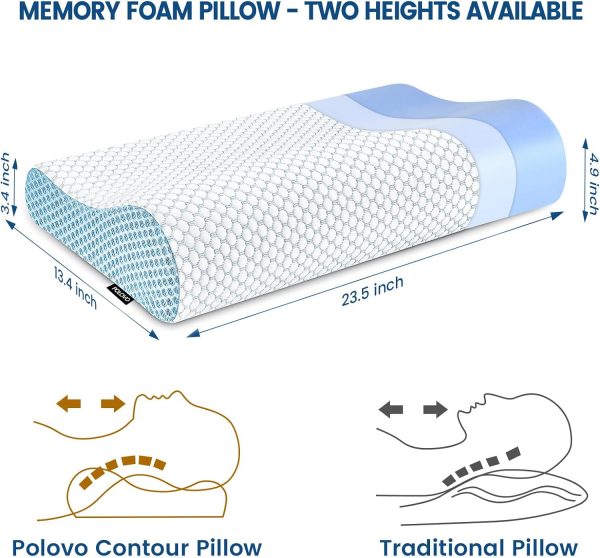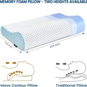 Contour Design for Any Sleep Style: The foam pillow is with size: 23.5 x 13.4 x 4.9/3.4 inches ( L x W x H). Contour pillow is designed with two adjustable heights to support the neck and head for any sleeping position, such as side sleeping, supine, stomach sleeping, back sleeping, and low pillow sleepers.